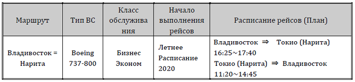 Также с 28 февраля 2020 года авиакомпания начинает выполнение рейсов между Владивостоком и Наритой.