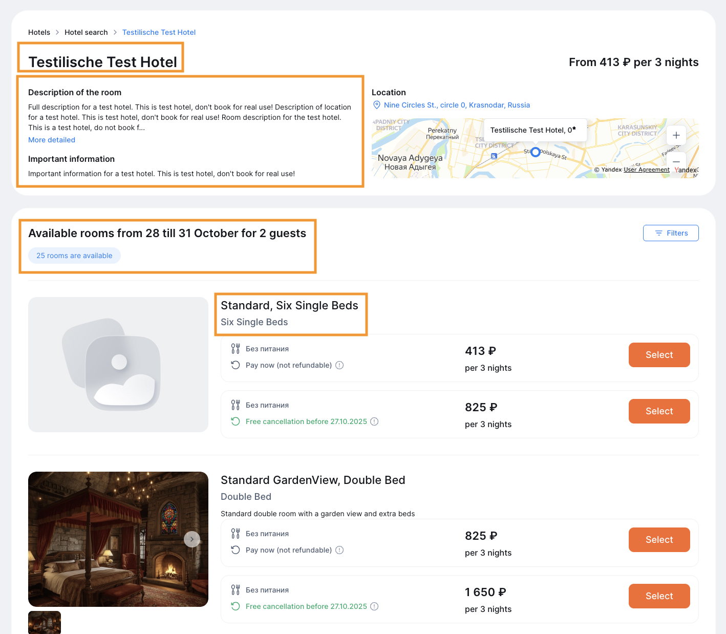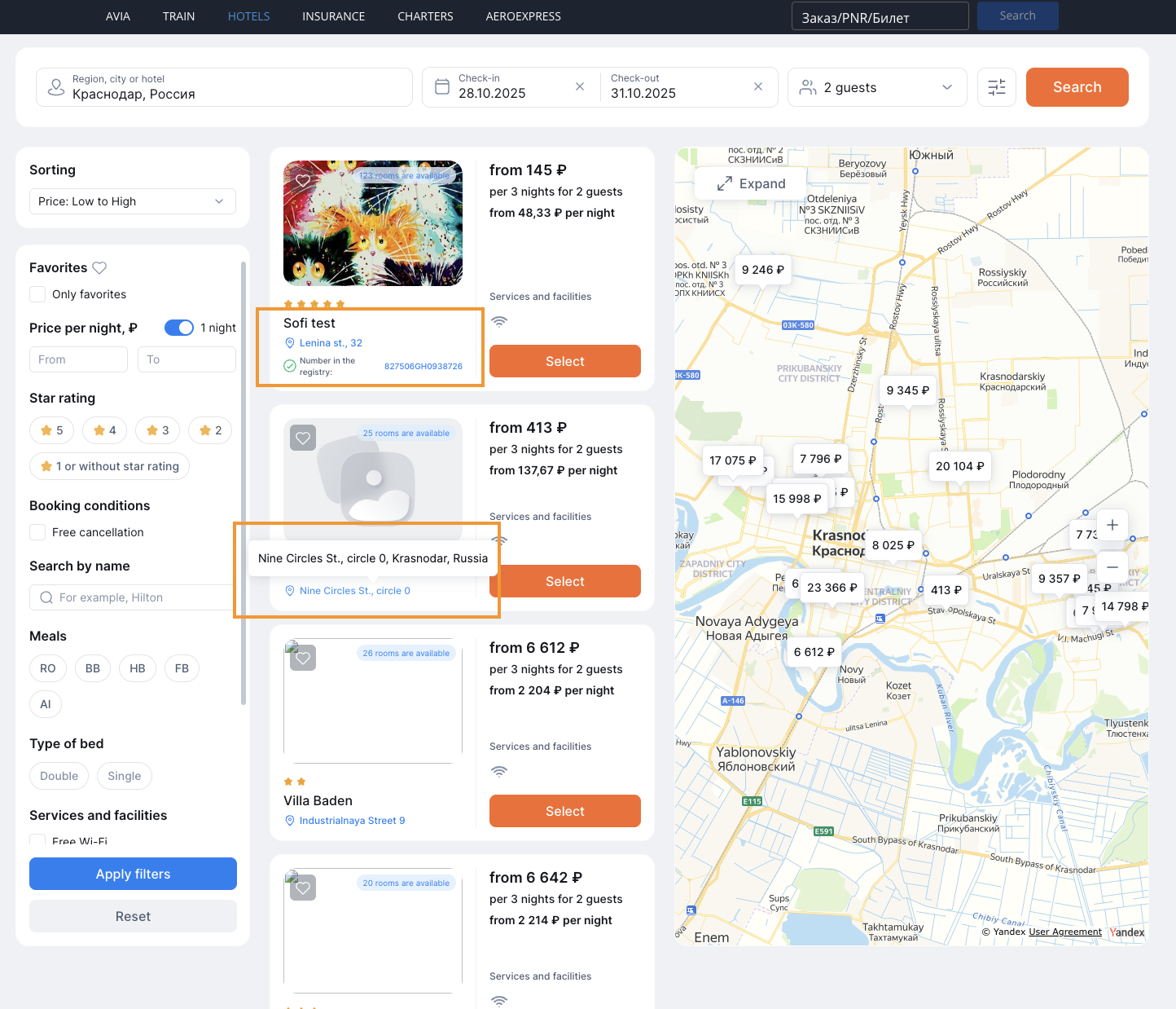 Исправили ошибки в сервисе "Отели", из-за которых некорректно отображались: