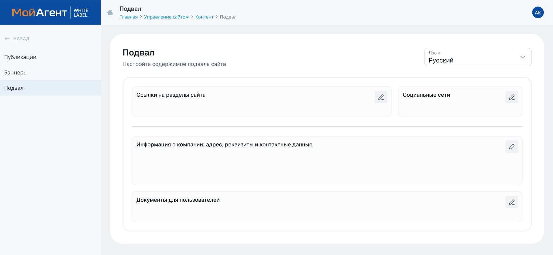 Доработали страницу "Подвал" (Главная -> Управление сайтом -> Контент -> Подвал), которая позволяет настраивать подвал сайта. Теперь здесь можно добавить и настроить:
