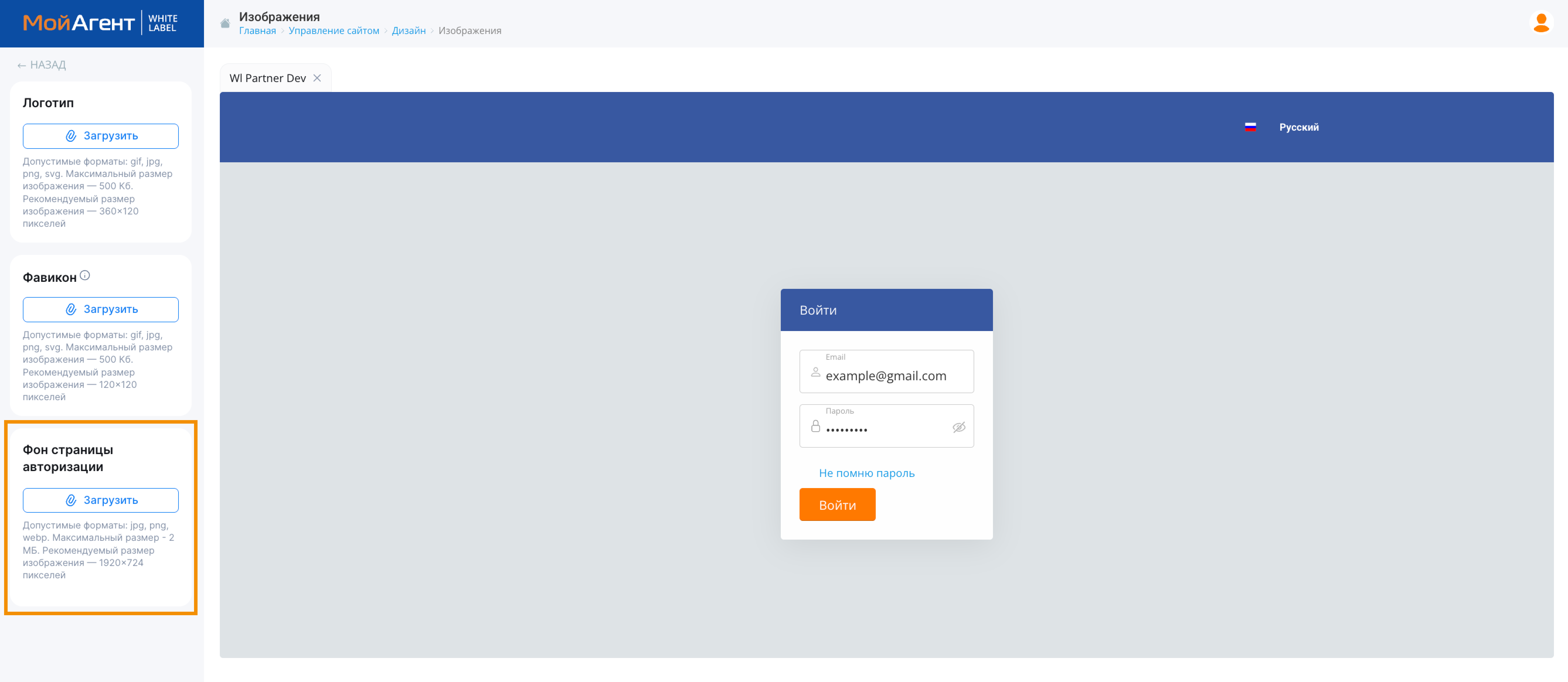 Теперь можно ещё больше кастомизировать страницу авторизации и главную страницу сайта, добавив фоновое изображение. Используйте для этого раздел "Изображения" (Главная -> Управление сайтом -> Дизайн -> Изображения). Раньше этот раздел назывался "Логотип" и позволял настроить только логотип и фавикон