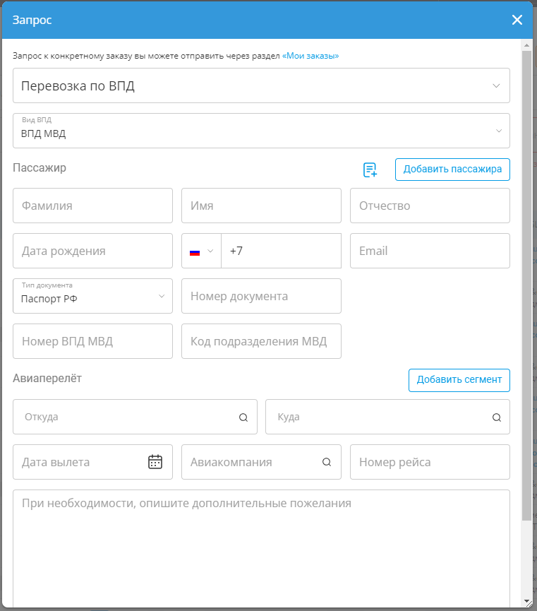 • Добавили на форму ВПД возможность выбора пассажира из списка сохранённых.