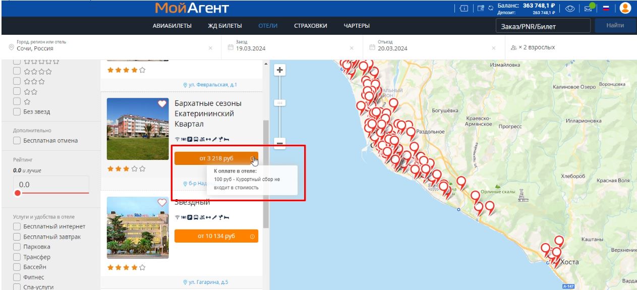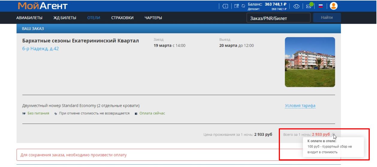 выбора номера в отеле и создания заказа