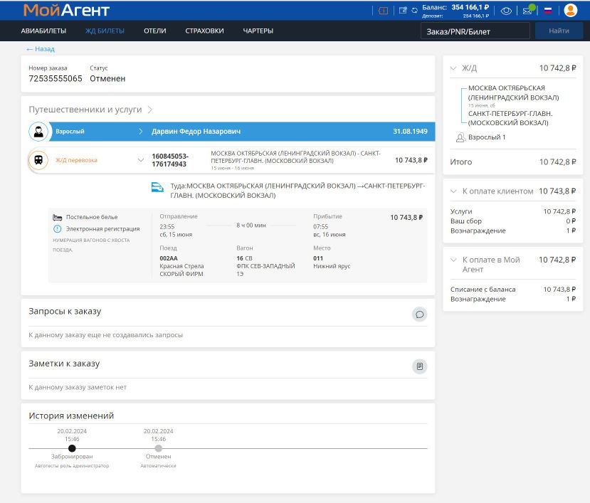 Обновлена страница созданного ж/д заказа. Теперь она внешне стала похожа на страницу авиазаказа, но функционал остался прежним — это позволит работать в привычном интерфейсе и экономить время на проверке данных.